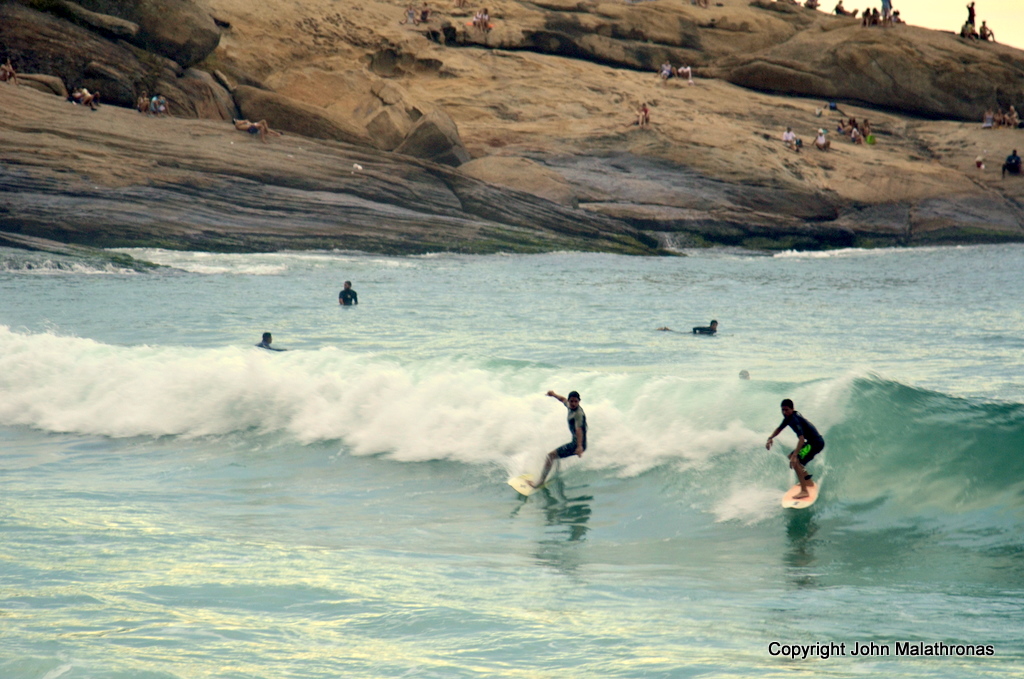 The sun is hot, and every single square inch of the beach has a bum on it. Well, part of a bum really, as the Carioca behind is of considerable circumference. It takes me half an hour to find my friends in the crowd, and it takes me another half hour to butt-off the space to stretch out my own bottom. It’s sad, but diving in the sea is a no-no most days, unless you are an intrepid surfer. If the waves don’t get you (Ipanema means ‘bad, disturbed water’ in Tupi), the freezing water will put you off decisively. At least there is no experimental Petrobras oil rig in the ocean spoiling the view. Ten years ago they had started drilling within sight of the beach: sacrilege!