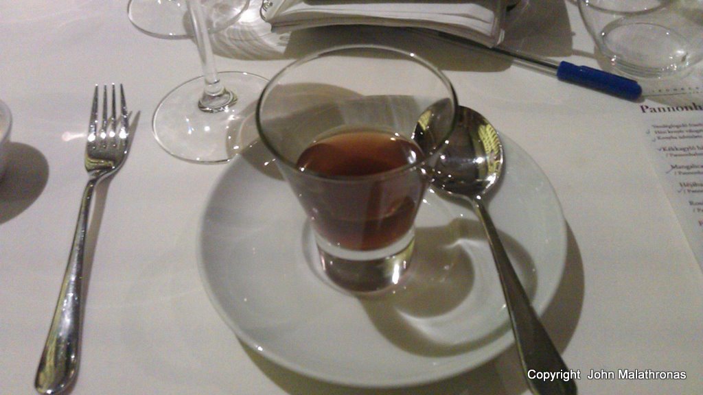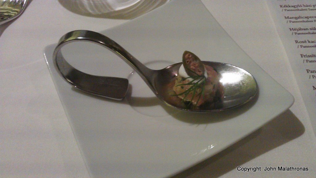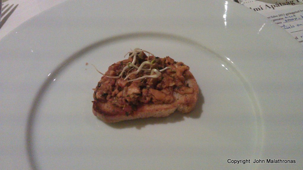 Anyway, here are the courses for you. I photographed them with my HTC camera so apologies for the picture quality. The wines (seven different ones overall) stemmed from the vineyards of the 1000-year old Pannonhalma Abbey who co-organised the event with the Ikon restaurant. I thoroughly recommend their Sauvignon Blanc and their Pinot Noir.