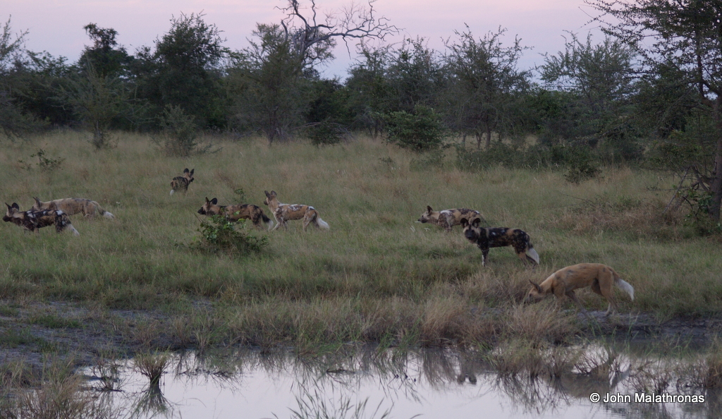 Big game also followed suit. In Xigera we were surrounded by hippos and the semi-aquatic red lechwe – we even had a glimpse of the elusive sitatunga antelope. In Little Vumbura we saw kudu, tsessebe, zebra, giraffe, wildebeest, waterbuck – even ostrich – plus elephants, hyenas and packs of African wild dogs on the prowl.