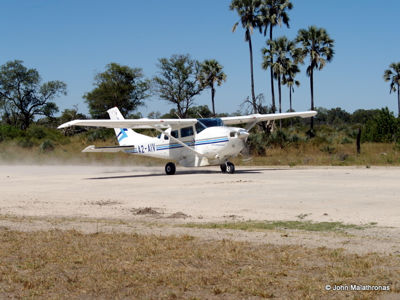 Small Cessna six-seaters are the only way to move in the Okavango. They land in makeshift airstrips trying not to hit straying wildlife.